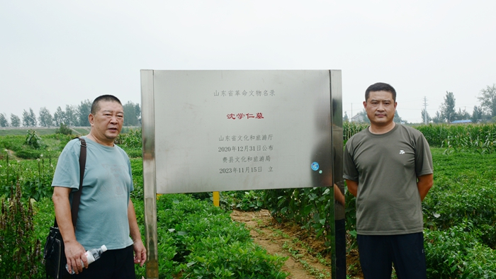 尹志林与该村党支部书记沈艳伟、退休干部沈宝泉等一起追忆了李韶九的革命事迹。现场查看了李韶九的故居旧址、见证当年党支部开会的大槐树、当年村支部党员秘密聚会并掩藏过八路军伤病员的山洞和列入山东省革命文物名录的沈学仁烈士墓等红色记忆资源现状。就李韶九革命事迹的弘扬传承和故居的恢复修缮等事宜,进行了探讨和交流。