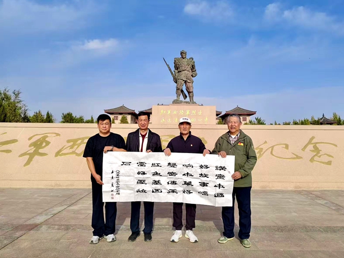 大众印象网讯(张春兄 冯爱云)“讲实中国好故事,唱响中国好声音,传承红色基因当好压舱石。”应八路军研究会太岳分会会长、原开国上将王新亭之子王万里要求,由书法大家王杰宝亲笔书写的这幅隶书作品,于10月10日,经王万里会长之手,赠送给新疆生产建设兵团第十三师红星军垦博物馆。同日,新疆五家渠市第六师103团党委书记、政委王承位同志也受赠了另一幅相同作品。