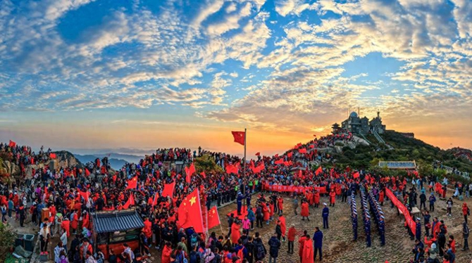 大众印象网讯 2025年国庆佳节,山东泰山之巅,一幅令人震撼的“中国红”画卷绚丽绽放。10月1日,“我们的节日·我们的泰山”文明实践暨“中华泰山 国泰民安”主题活动,如强大磁石般吸引1.3万游客齐聚岱顶。在朝阳与国旗的交相辉映下,共同谱写了一曲动人的爱国篇章。